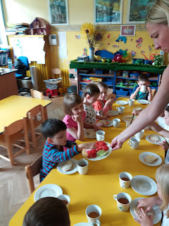 31.10.2017 r. w ramach cyklu dydaktycznego pt. " Przygotowania do zimy" postanowiliśmy własnoręcznie ukisić kapustę. Krojenie okazało się wielkim wyzwaniem, z którym poradziliśmy sobie na medal. Jednak najfajniejsze w kiszeniu było mieszanie i ubijanie kapusty. Teraz pozostało Nam tylko poczekać na efekty naszej pracy i cieszyć się smakiem zdrowej i smacznej kiszonej kapusty.