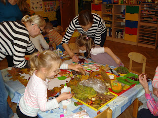 17.10.2016r. w godzinach popołudniowy, dzieci razem z rodzicami uczestniczyły w jesiennych warsztatach pt. "Co nam daje Pani Jesień?" Chociaż frekwencja nie dopisała, wszyscy efektywnie pracowali dobrze się bawiąc. Pomysłowość i różnorodność wykorzystanych materiałów przyrodniczych sprawiła,że prace były wyjątkowe i niepowtarzalne.